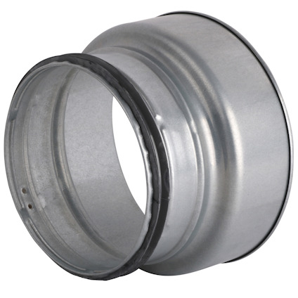 Reduktion muff/nippel med packningar används vid övergång til mindre dimension på kanalnätet. Den största dimensionen passar utvändigt på nippeln och den minsta dimensionen invändigt i muffen.