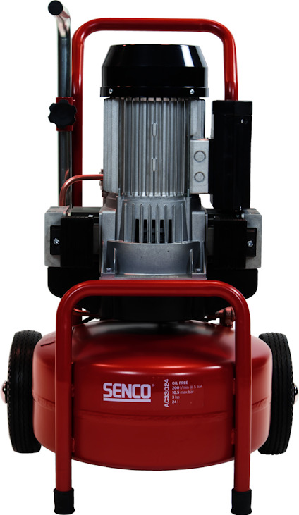 Senco C33024 är en oljefri kompressor speciellt anpassad för luftverktyg med stor luftåtgång då den avger en stor mängd tryckluft per minut. Utrustad med dubbla luftuttag och självdränerande vattenavskiljare.